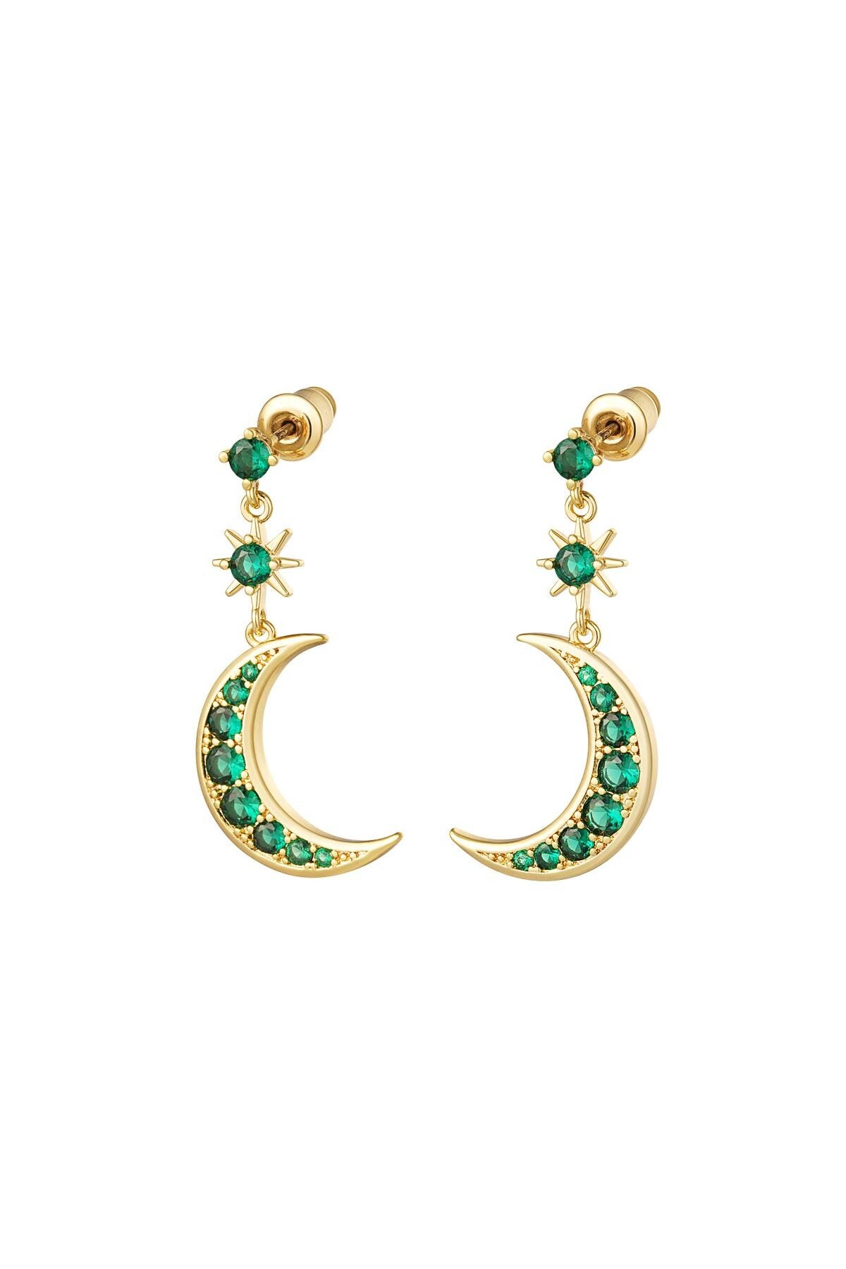 Schattige gouden oorbellen met een hangertje in de vorm van een klein sterretje en een maantje. De oorbellen zijn gemaakt van gold plated koper. Deze sparkle oorbellen zijn ingelegd met kleine zirkonia steentjes in de kleur groen.