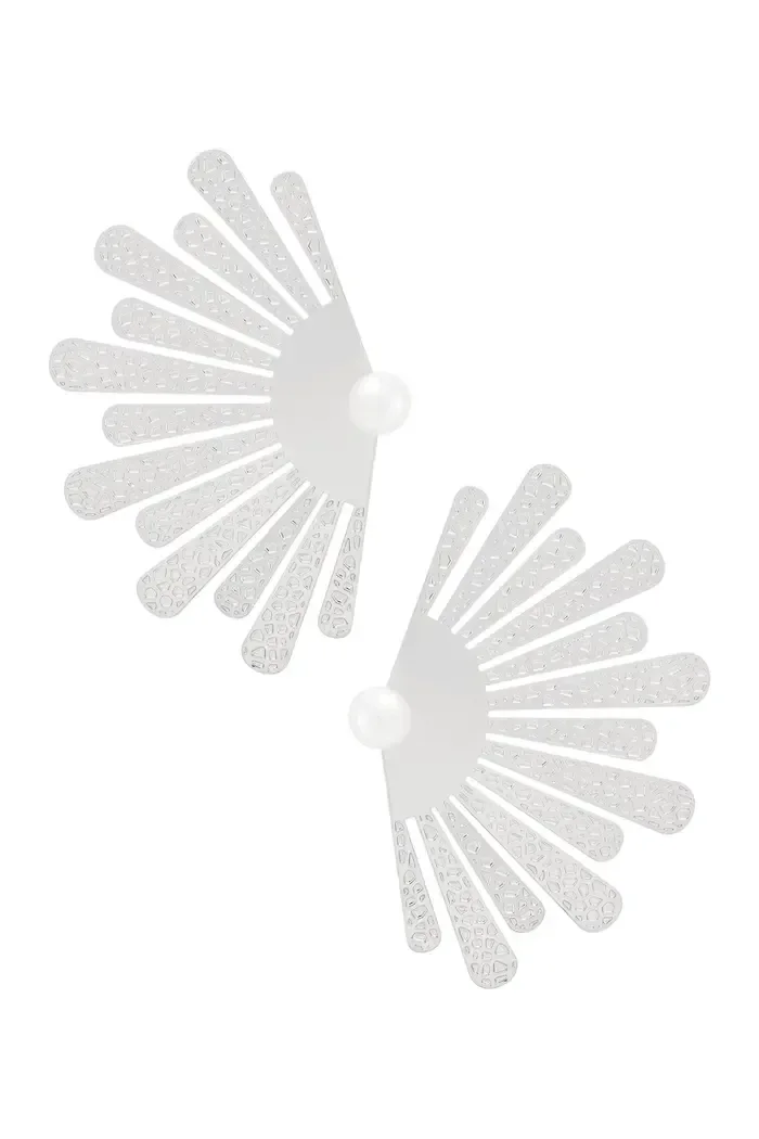 Oorbellen halve bloem met parel - zilver