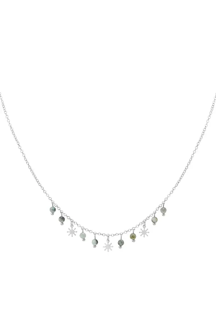 Ketting steentjes groen - zilver