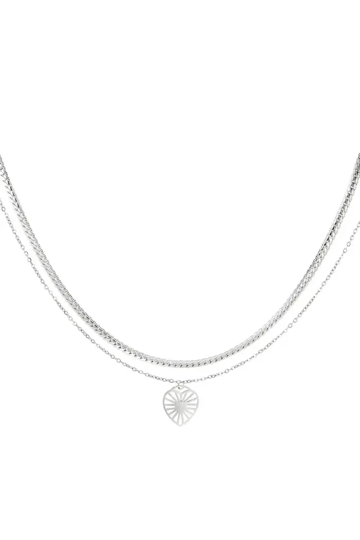 Dubbele ketting van roestvrij staal met een hartvormige bedel.